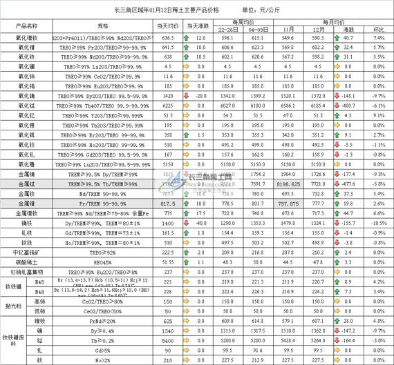 - · 长三角区域年01月12日稀土主要产品价格 2026-01-13 09:40:22