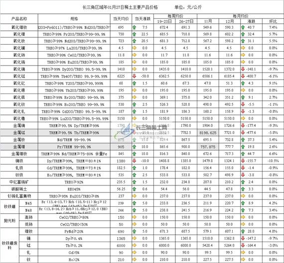 长三角区域年01月27日稀土主要产品价格