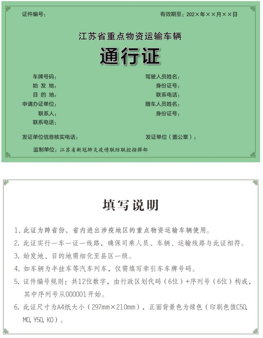 江苏将启用全国统一式样《重点物资运输车辆通行证》