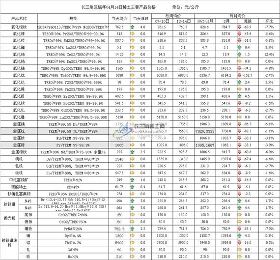 长三角区域年04月14日稀土主要产品价格